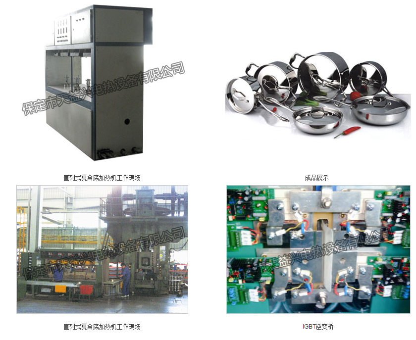 主要用于復合底鍋壓焊前的預熱,與摩擦壓力機配合,可實現復合金屬煲底壓焊工藝,俗稱“打底”。加熱機電源和機床均由微機控制,是由多套微機控制的電氣、機械、氣動一體化技術設備。